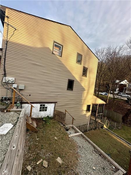 Fantastic investment opportunity! You can live in one side and let the other pay for you to live! This property has 2 side by side units. You enter into a living room with a large window in the front. A full bath is also on this level. The second level has 2 bedrooms. The front bedroom has a half bath. The lower level has a nicely sized eat in kitchen. You can walk out of the kitchen to a 16x10 covered deck. The deck overlooks a fenced in backyard with a privacy fence at the rear of the property. A well sized storage area & utility room is also on this level. On each side of the structure are steps that lead from the front to the lower level and backyard. Each unit has separate hookups for washer and dryer. off street parking. bedroom 1 15x12, bedroom 2 13x12, Living room 15x15, Kitchen 14x11. sewage & water pd by landlord. gas/electric pd by tenant. separate meters
