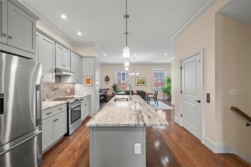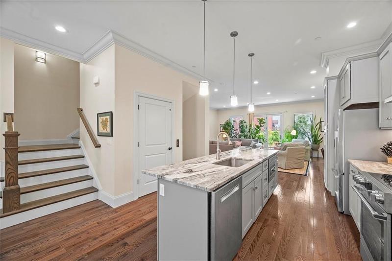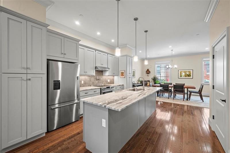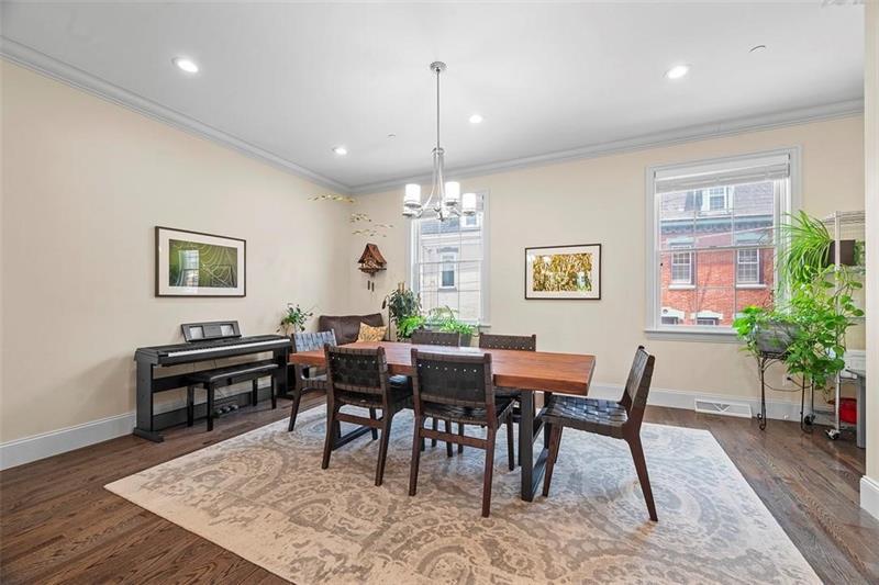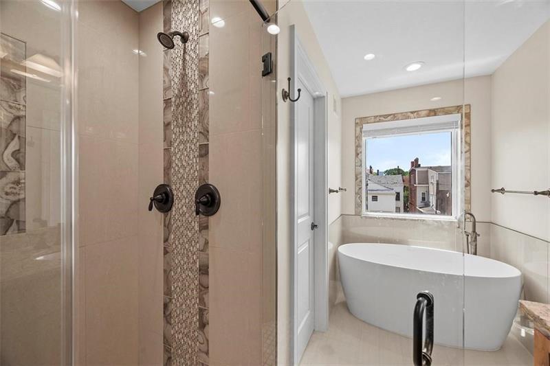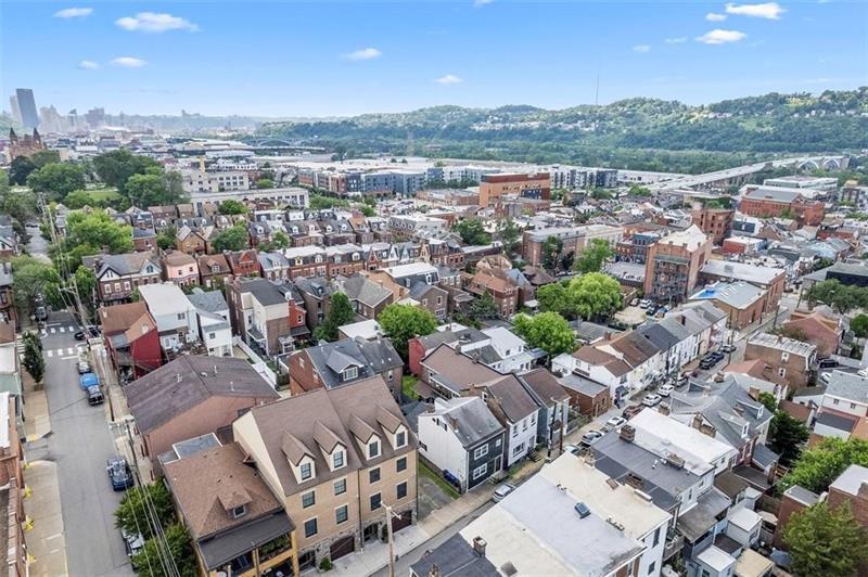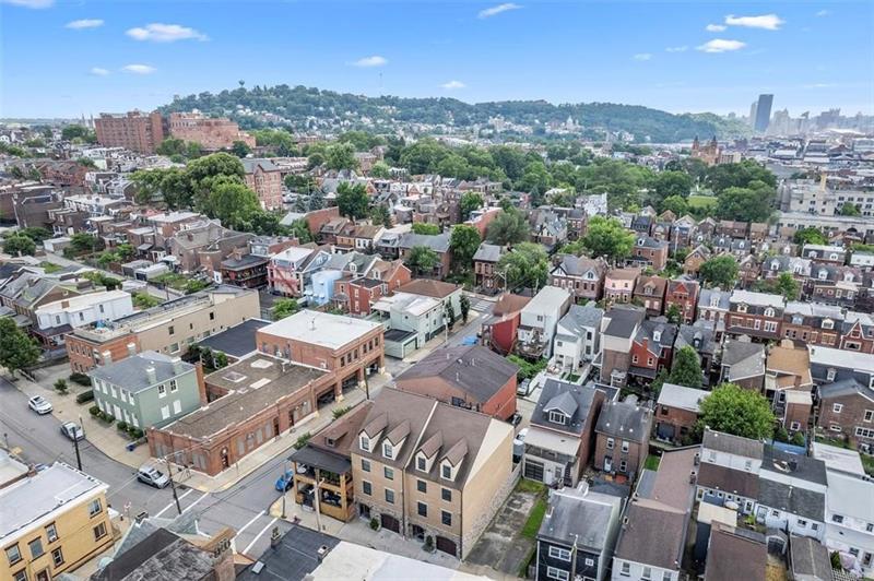 This beautiful stone and brick home features high-end craftsmanship and thoughtful design throughout. From top-tier flooring and custom cabinetry to oversized Andersen windows and designer tile work, every detail has been carefully curated to create a luxurious living space. A private elevator services all four levels, offering seamless access from the garage to the rooftop deck, which boasts sweeping views of the city skyline. The expansive great room flows effortlessly into an open-concept kitchen, complete with premium appliances, elegant countertops, and a built-in wet bar. The spacious pimary suite features two walk-in closets and a spa-like bathroom with radiant heated floors. The upper-level offers both indoor and outdoor living with panoramic views and a private deck with outdoor storage. Just minutes from the Strip District, UPMC Children's Hospital, and all that Lawrenceville has to offer, this extraordinary home delivers elegance, convenience, and unmatched craftsmanship.