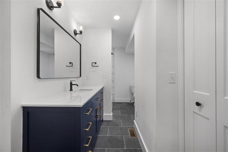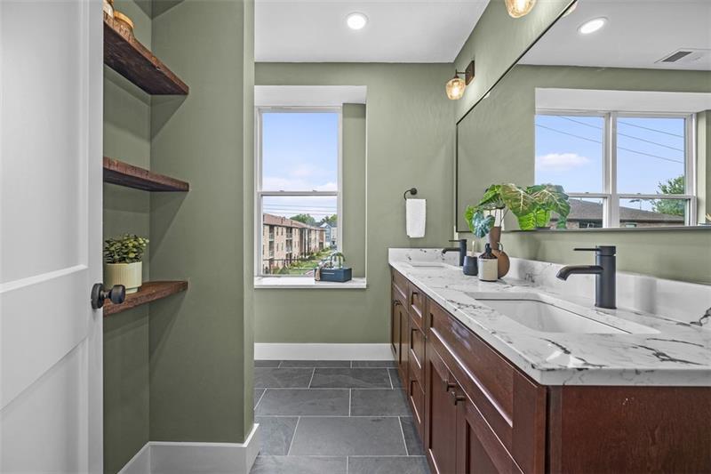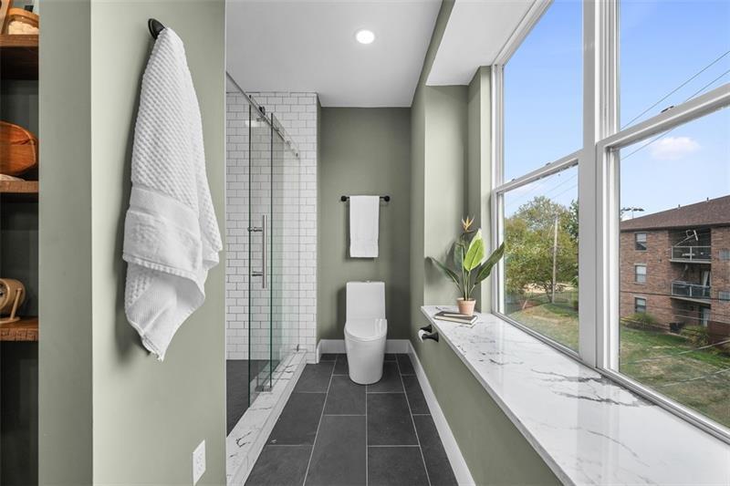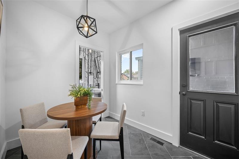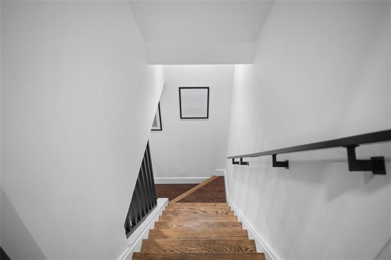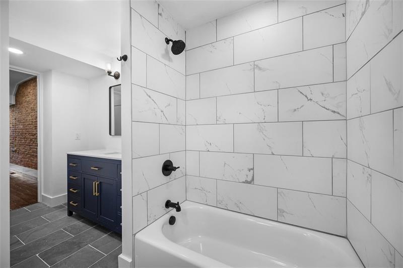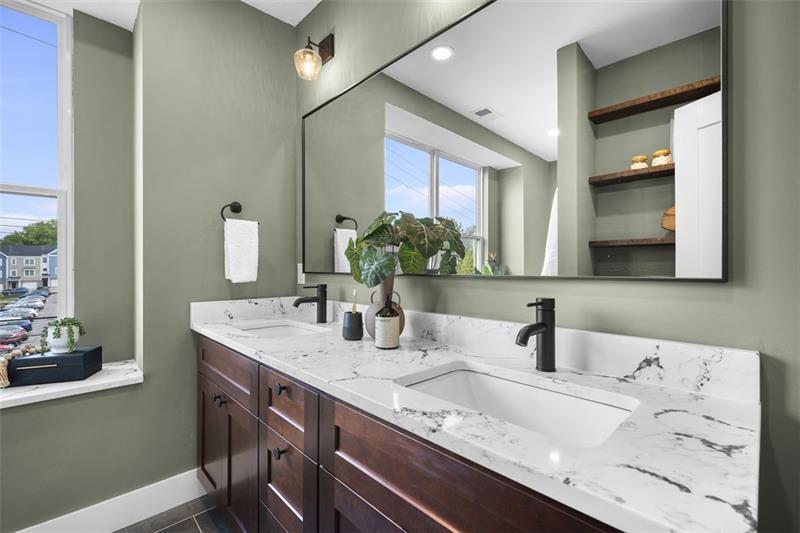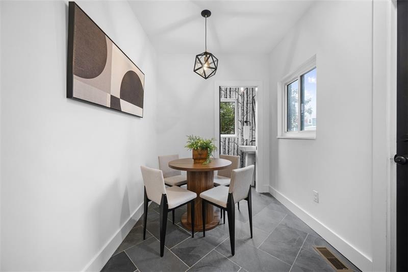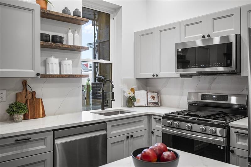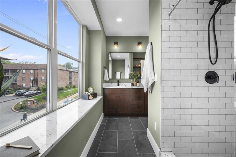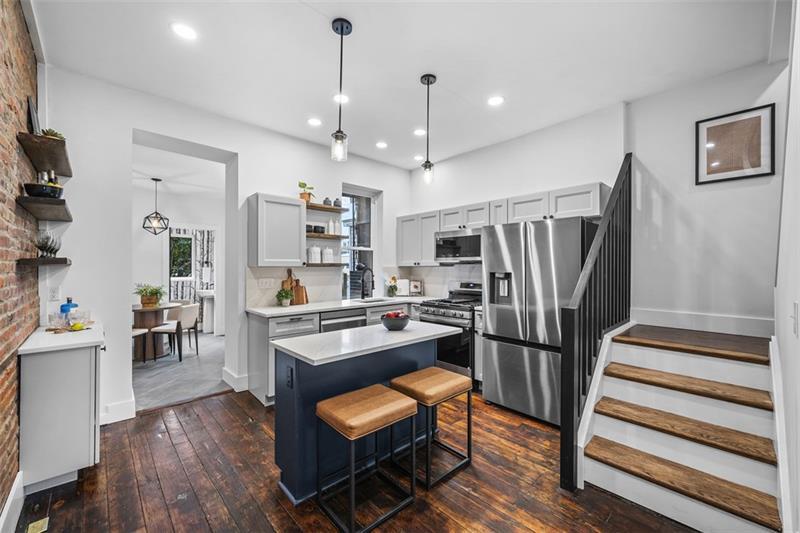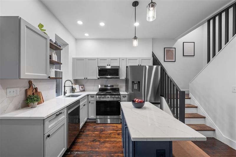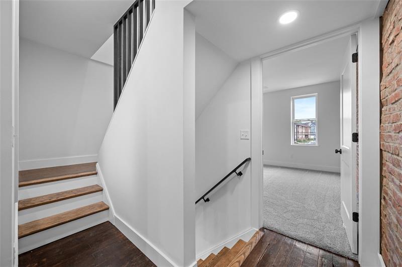 Stunning, newly renovated townhome in the heart of Lawrenceville! Step inside to the inviting living room featuring an exposed brick fireplace and accent wall that leads into the chef's kitchen with granite countertops, a large island, and stainless steel appliances. The dining room offers exterior access, perfect for entertaining, and a convenient powder room completes the main level. Upstairs, you'll find a spacious bedroom with a brick fireplace and double closets, a second bedroom that is SOUND PROOF behind a stylish barn door, and a beautifully updated full bathroom with a tiled shower and laundry area. The top floor features a private loft-style primary suite with balcony access and a luxurious upgraded bathroom. Enjoy relaxing on your balcony or in the courtyard below. One off-street parking space completes this exceptional home. Steps from away Leslie Park, Allegheny Cemetery and UPMC Children's Hospital! Don't miss this one!