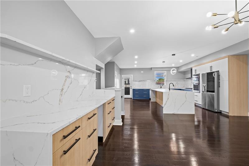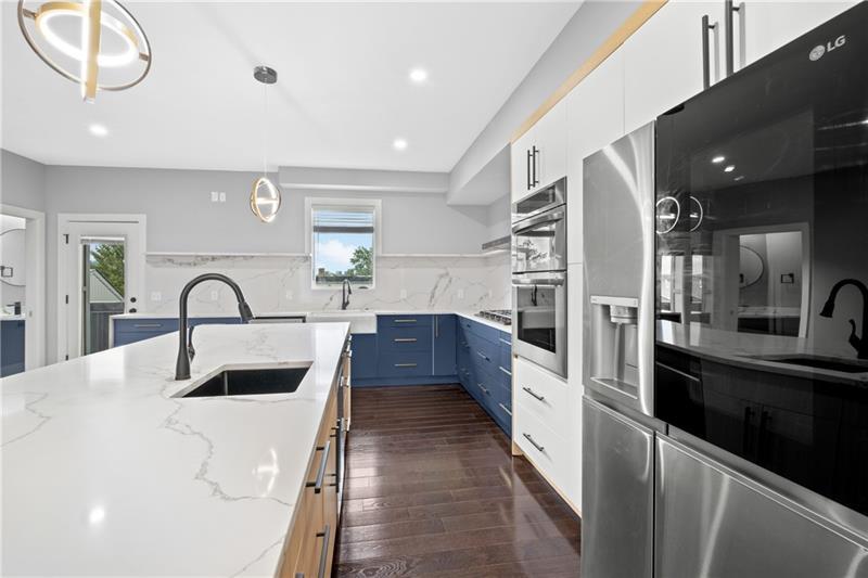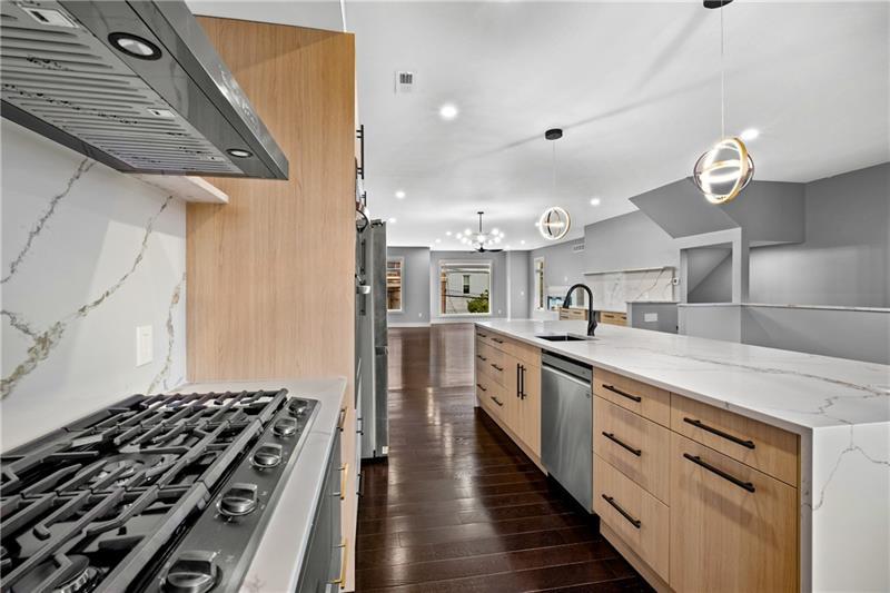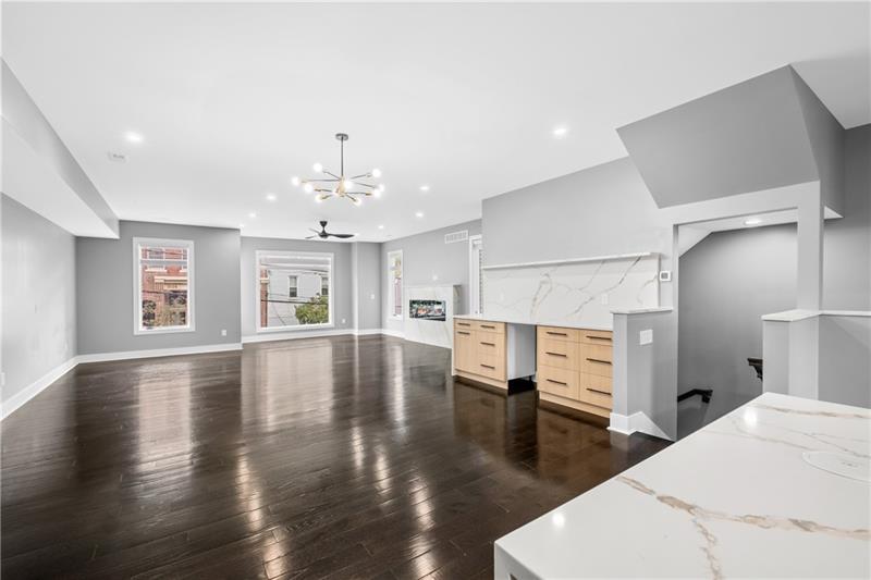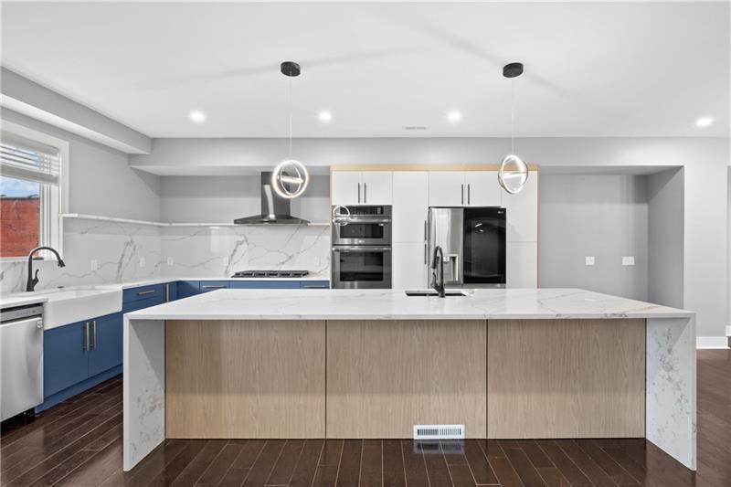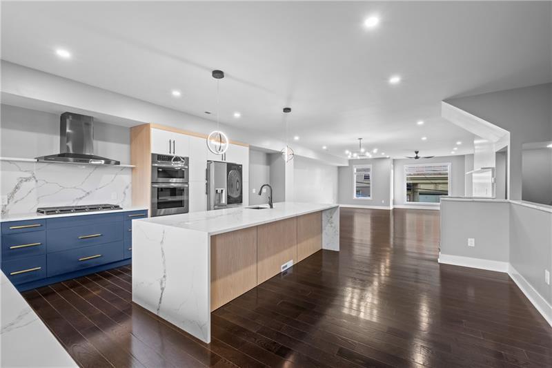 New Construction in Polish Hill! This modern home offers an oversized 2 car integral garage, 4 generous bedrooms, and 3.5 baths finished with premium materials. The open floor plan features beautiful flooring throughout and a seamless flow between the living, dining, and kitchen areas. The chef's kitchen is fully equipped with a large island, waterfall quartz countertops, quartz backsplash with custom ledge, and high end appliances! Perfect for cooking and entertaining! Upstairs, the spacious bedrooms include a luxurious owner's suite with a spa-like bath. Enjoy incredible outdoor living with multiple decks, plus a rooftop deck showcasing sweeping views. With quality construction, stylish finishes, and abundant natural light, this home delivers the ideal blend of comfort, function, and modern design in one of Pittsburgh's desirable neighborhoods.