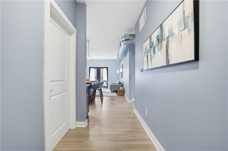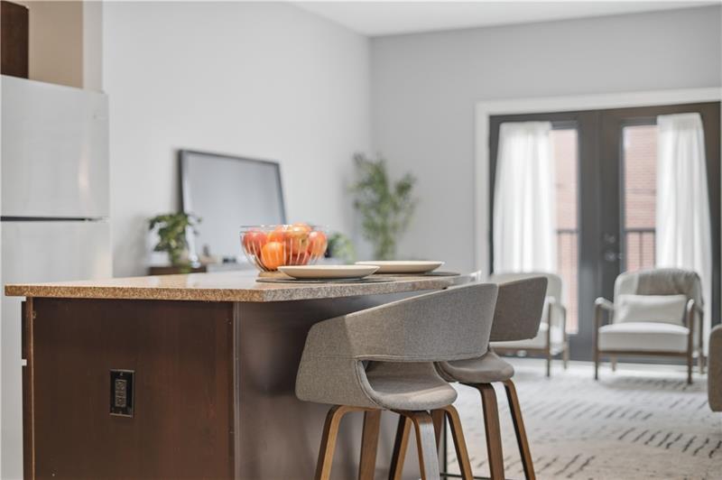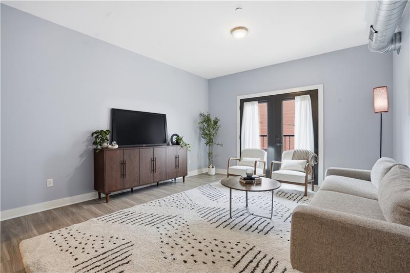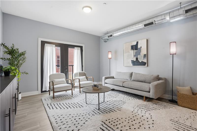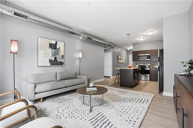 Welcome to Unit 202 at The Wainwright, a stylish and modern condo in the heart of Lawrenceville offering the perfect blend of contemporary design and urban convenience. This bright, open-concept residence features a spacious living area with soaring ceilings, oversized windows, and abundant natural light. The sleek kitchen is equipped with granite countertops, stainless steel appliances, and a large center island with seating"”ideal for both everyday living and entertaining. The open layout flows seamlessly into the living space, highlighted by clean lines and modern finishes. Large glass doors open to a charming Juliet (French) balcony, bringing in fresh air and enhancing the light-filled atmosphere. The generously sized bedroom offers plush carpeting and excellent closet space, while the full oversized bath features a large vanity and a clean, modern design. A separate in-unit laundry and storage area adds convenience and functionality. The unit's contemporary feel is further elevated by exposed ductwork and a neutral palette, creating a true loft-style aesthetic. Convenient storage locker located just down the hall on the same floor. Below you will find a home for your car with its own assigned space in the garage. Located just steps from Lawrenceville's vibrant Butler Street, you'll have easy access to some of Pittsburgh's best restaurants, shops, and entertainment. This secure, well-maintained building offers low-maintenance living in one of the city's most sought-after neighborhoods.