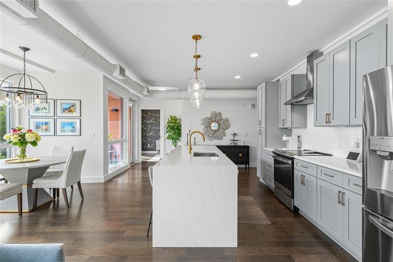 Welcome to unit #304 - an absolutely stunning corner condo in the Lawrenceville Lofts! This bright and luxurious condo features soaring ceilings, floor-to-ceiling windows with expansive Butler Street views, and an open-concept living space! The upgraded kitchen includes an oversized island with waterfall edges and barstool seating. Luxe + upgraded lighting fixtures along with custom window treatments elevate the living, dining, and bedroom spaces! The expansive living room offers a cozy fireplace. The owner's suite boasts an extra-large bedroom, walk-in closet with custom shelving, and spa-like en-suite with dual vanities. The second bedroom (currently an office) also features a walk-in closet and access to a full bath. The condo includes 1 garage parking space & access to the rooftop amenities including dog park, fire pit, tv, & lounge! A pet friendly building in an unbeatable location just steps from Butler Street's best shops, cafes, and restaurants!