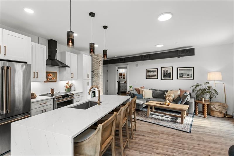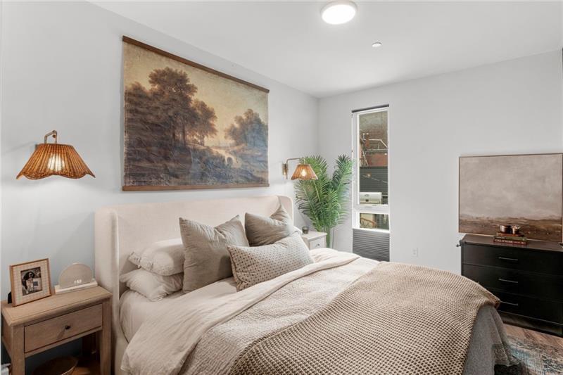 Experience designer-inspired living at 3725 Butler Street, Lawrenceville Lofts. Residence 209, a quiet corner two-bedroom, two-bath home featuring abundant natural light and a spacious private balcony. The primary suite is tastefully designed for your peace and relaxation, offering a walk-in closet with organizers, a spa bath experience with a soaking tub, and a walk-in glass shower. The curated guest bedroom offers a flexible space for your Murphy bed or home office. Offered fully furnished with an elevated Anthropology + West Elm aesthetic, this residence blends modern luxury with comfort and convenience. Enjoy an open-concept layout, sleek kitchen w/CAFE appliances, storage closets, in-unit laundry. Smart-home technology, energy-efficient windows, & custom lighting enhance everyday living. Garage Parking and community rooftop amenities complete the package. Dining, shopping, CMU Robotics, the Strip District, Children's Hospital are all within walking/biking distance. Tax Abatement!