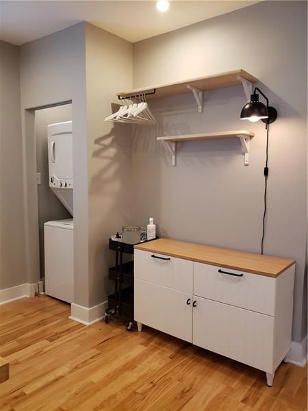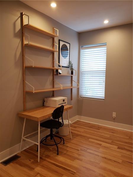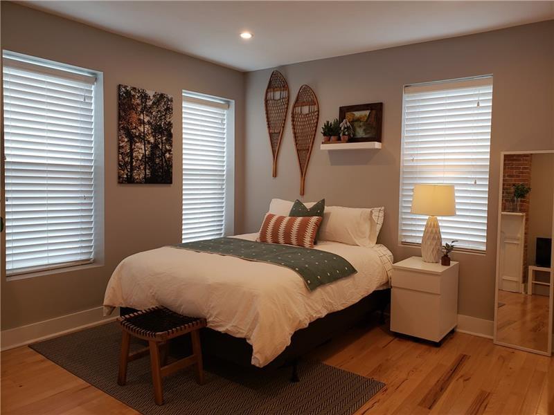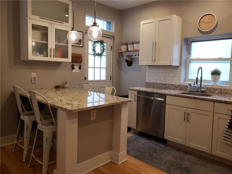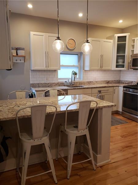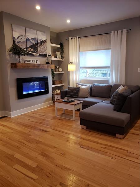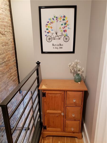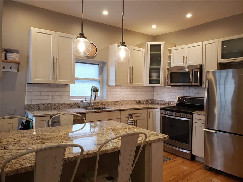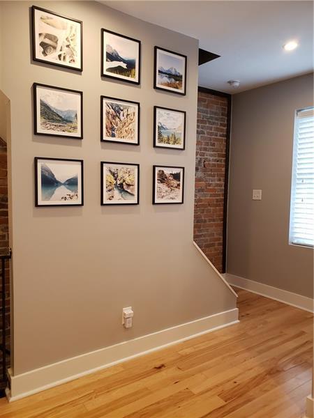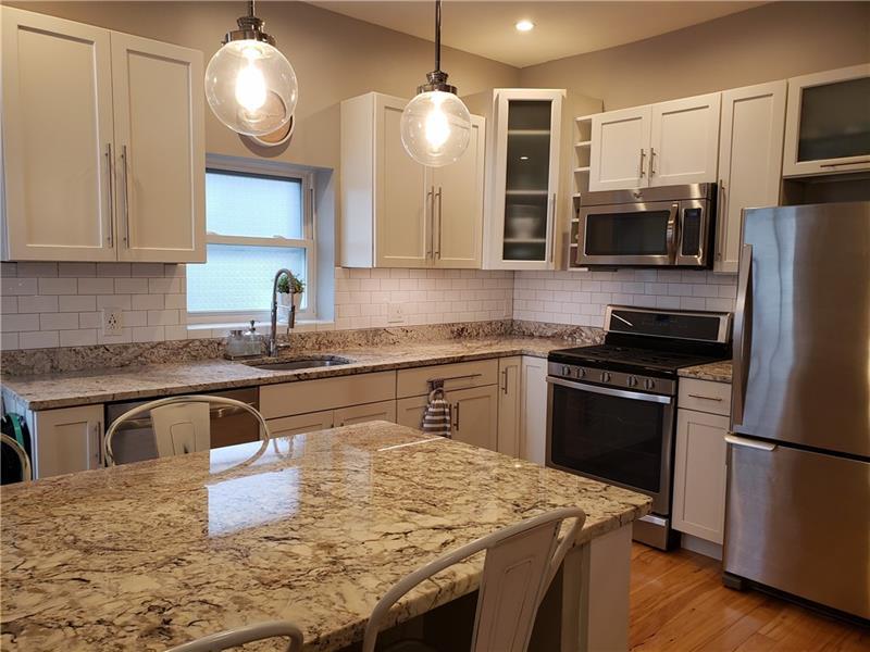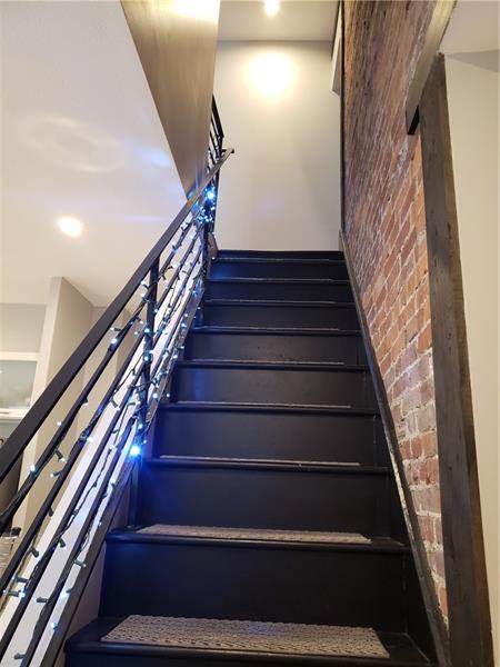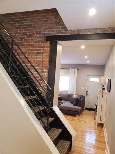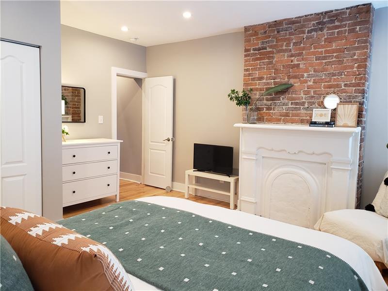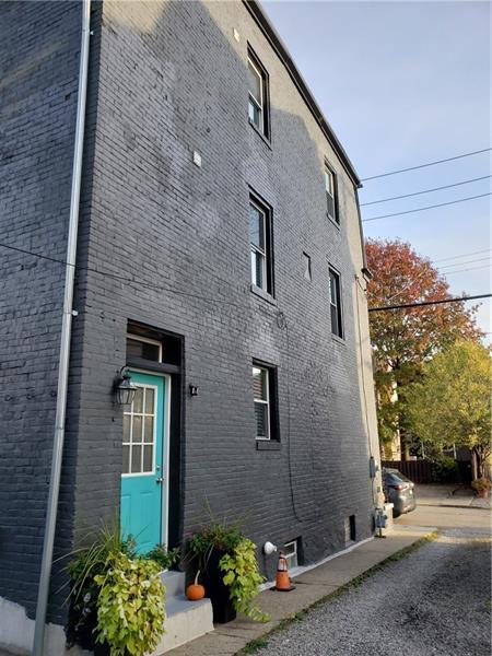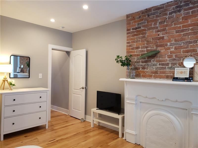 A Beautiful Renovation located in the Heart of Lawrenceville Within Walking Distance of the Hospital, Restaurants, & the Strip District, this house once was a side-by-side double that provided housing for mill workers at the turn of the 20th Century. This home is a stunning blending of modern & high tech upgrades, with beautiful 1900 architectural features. Situated on a corner lot, it offers a spacious parking pad in the back with some outdoor patio space. Inside there are hardwood floors throughout. The Large LR boasts a beautiful high tech fireplace, an original mantle, and built-in shelving. The Large picture window lets in lots of light! The kitchen is full of bright white cabinetry & high tech lighting, SS appliances, a SS sink, & Kitchen Island for enjoying breakfast, lunch, or dinner or just playing cards with friends. The kitchen door conveniently leads to the parking pad & patio outside. A Rustic 1900 red brick wall leads to the three upstairs bedrooms. On the 2nd Floor is a lovely Guest BR with stunning original fireplace mantle, an updated full bath, & a home office area & laundry area with washer & dryer. On the 3rd Floor are the Master BR Suite with beautiful private bath & Guest Bedroom #3 with a large closet with organizing features.