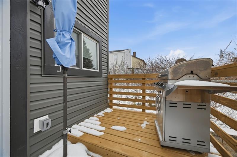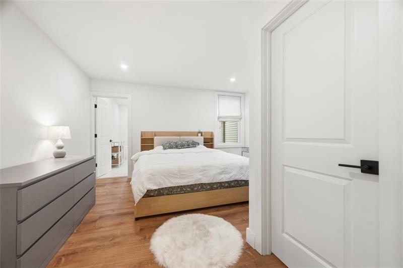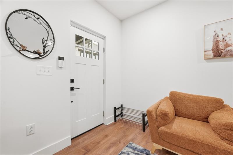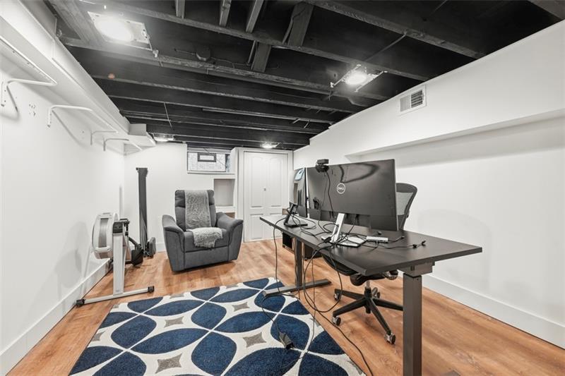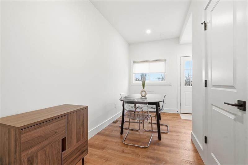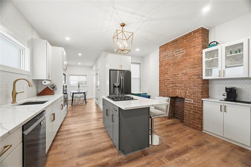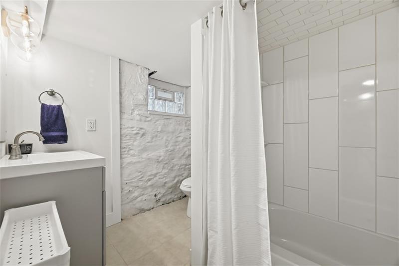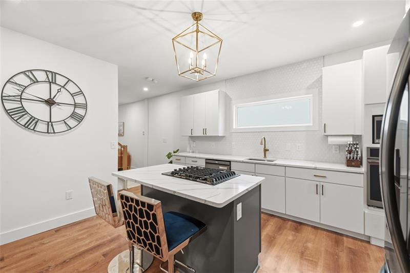 Welcome to this stunning end-unit home in the perfect Lower Lawrenceville location with off-street parking and a fenced yard! Fully renovated in 2023-2024 with new roof, new exterior, new windows, new plumbing, new electrical, and a gorgeous new interior. The kitchen features beautiful quartz countertops, stainless steel appliances, beverage bar, ample cabinetry, and a nicely-sized island with seating. There is also a separate dining area that could double as a home office, along with a first-floor powder room. Upstairs you'll find the roomy primary suite with walk-in closet, soaking tub, tiled shower, and double vanity. The second bedroom also has an en-suite bath, making it perfect for guests. The finished lower level offers even more space for a gameroom, flex space, or home office, and includes another full bath as well!