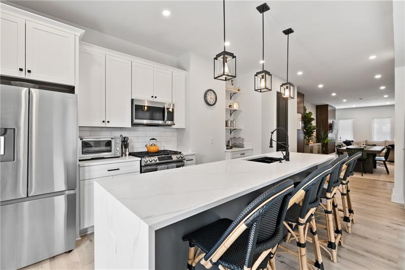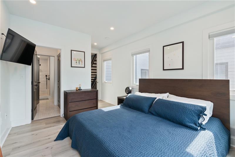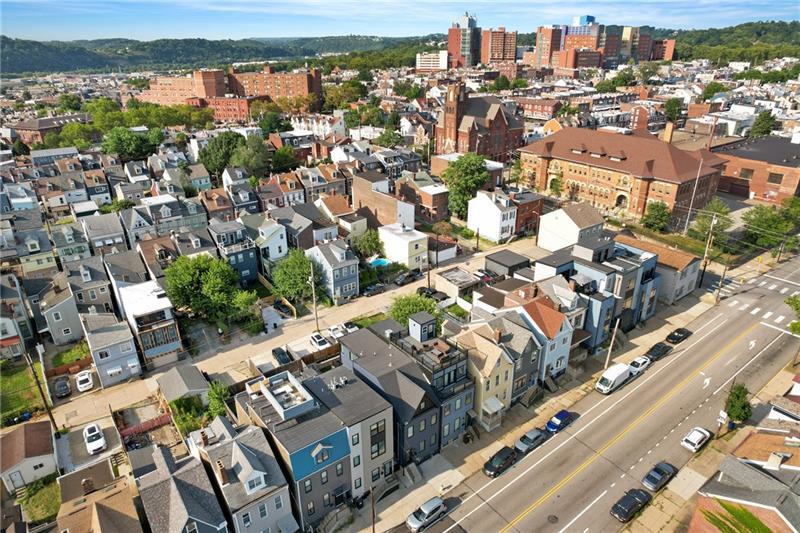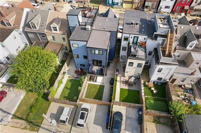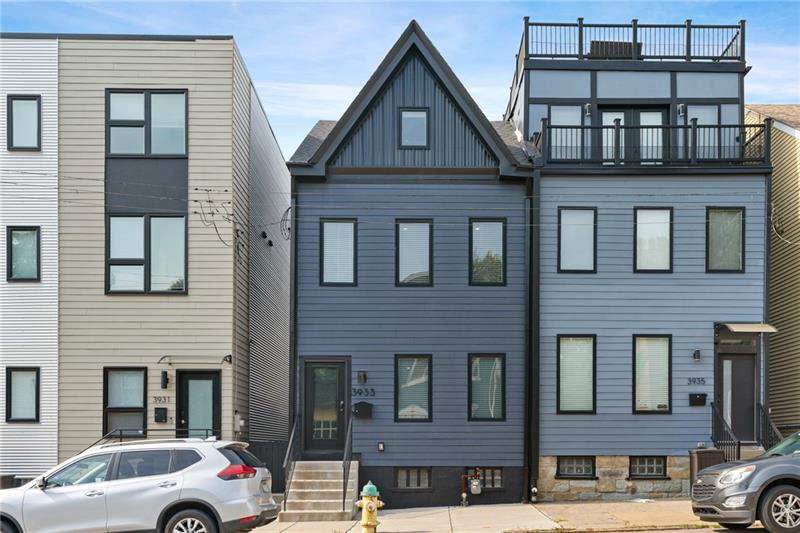 The best of Lawrenceville living. Complete, meticulous renovations top to bottom, inside and out. This contemporary townhouse offers endless amenities and features , including open concept floor plan, increcible kitchen w/ 13 ft center island, 10 ft ceilings on first floor, exposed brick, recessed lighting, floating stairs w/ custom "Iron Eden" railings, custom built-ins under stairs, 2nd floor laundry, 3 primary BR's w/ stunning ensuite baths plus a 4th BR ideal for home office or studio space. Beautifully designed outdoor spaces which include 8x12 Trex balcony off 2nd fl rear, ground level concrete patio, astro turf fenced yard with rear access from 2 car private parking pad. Walk to Butler St. shops & restaurants or bike to Strip District/Downtown, Shadyside and Bakery Square. Open House Saturday Oct. 11,2025 (11am-1pm)