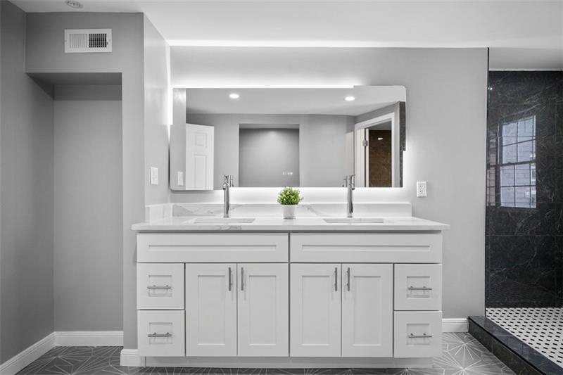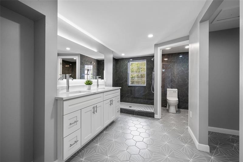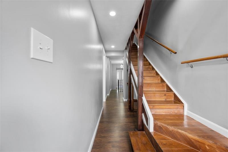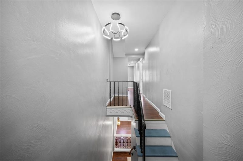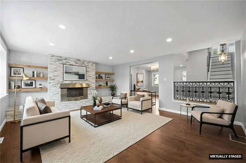 Don't miss out on this unique, modern, and updated 3B 4BR home with character in the desirable Lawrenceville neighborhood. Situated on a quiet street, this home has it all, including new hardwood flooring all throughout, a private and quiet back porch/yard, and a detached 2-car garage. The first floor opens with a bright and huge living room with a cozy fireplace surrounded by stone, built-in shelves, and big windows. Past the dining room is a bright kitchen with marble touches, with a dishwasher, stove, built-in microwave, and a kitchen island. On the second floor are 2 bedrooms, one with an ensuite bathroom. The master bedroom features a double vanity and huge walk-in shower, and a special touch with recessed shelves with lighting. There is one more full bathroom next to the other bedroom. Up the unique wooden staircase is the 2nd en-suite with a luxurious and open bathroom with a sit-in tub. There is even a full bathroom in the finished basement.So much space and charm.