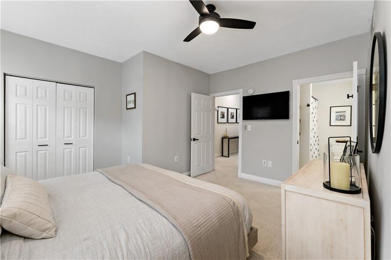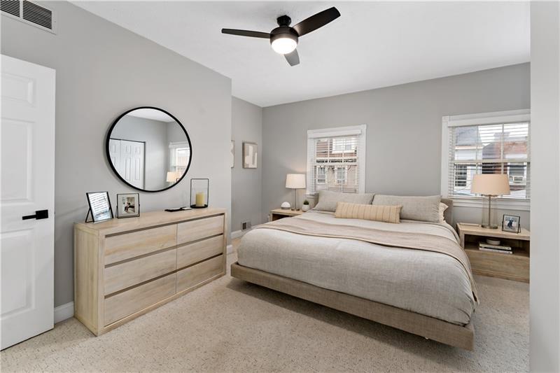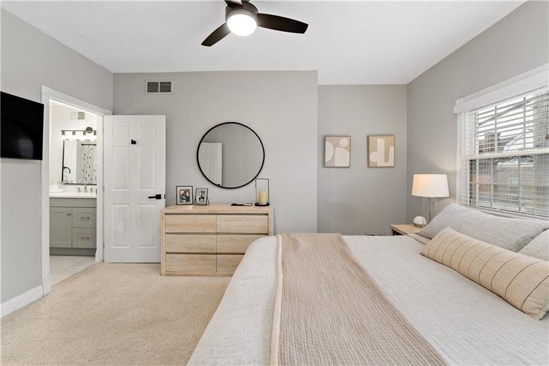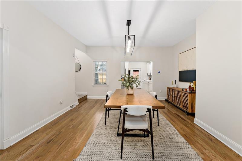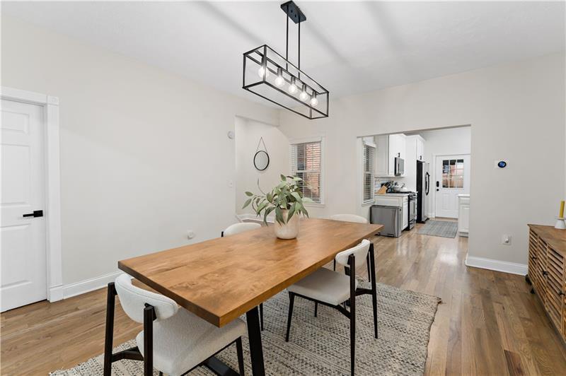 Discover urban living at its finest at 4018 Mintwood Street in the heart of Lawrenceville. This beautifully updated 3-bedroom, 2-bath home blends classic charm with modern convenience. Inside, warm hardwood floors flow through open-concept living and dining spaces accented by exposed brick walls. The main floor offers generous room to gather between the living and dining spaces, complemented by a thoughtfully designed kitchen with ample counter space, modern appliances, and a functional layout ideal for both everyday meals and entertaining. Upstairs, each bedroom is spacious and filled with natural light. The primary ensuite adds privacy and convenience to your everyday living. You can miss the signature third-floor retreat that's a Lawrenceville classic, perfect for an office or guest room. Outside, enjoy the rare bonus of a flat yard and off-street parking, a true luxury in city living!