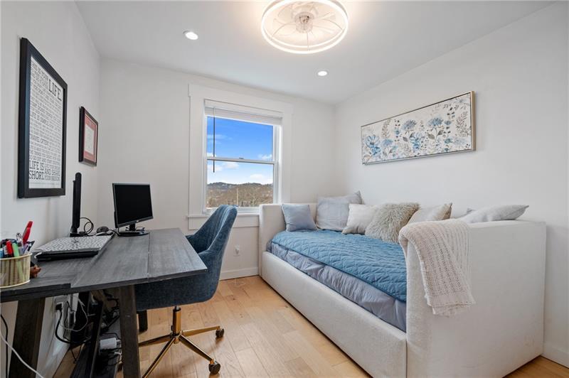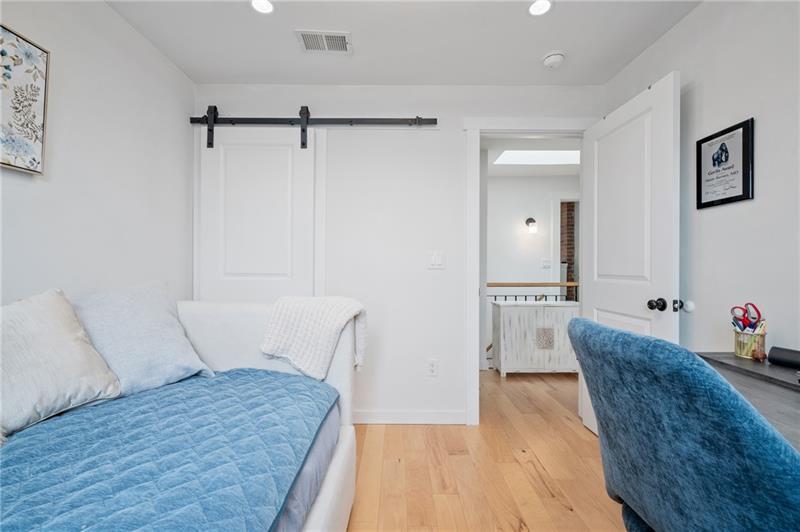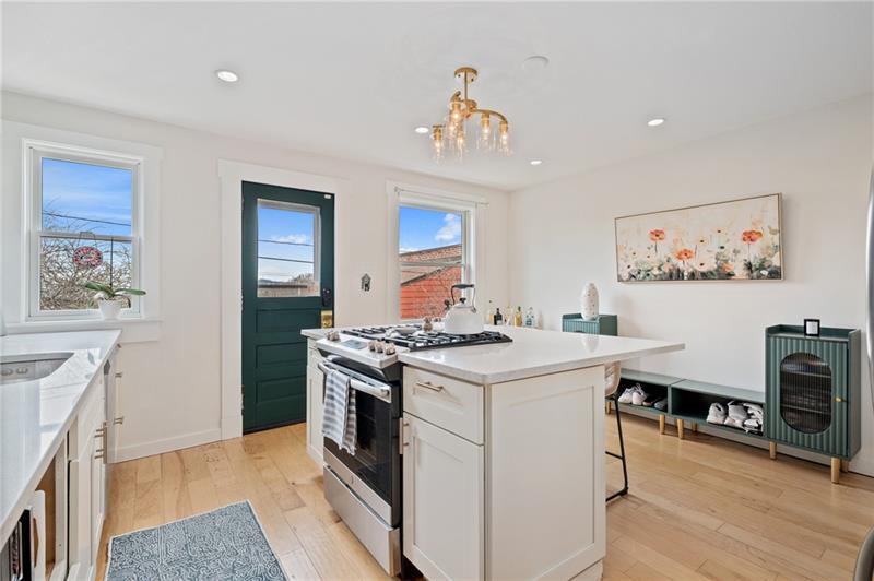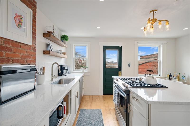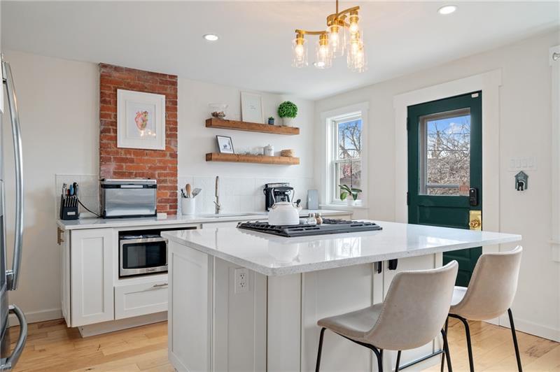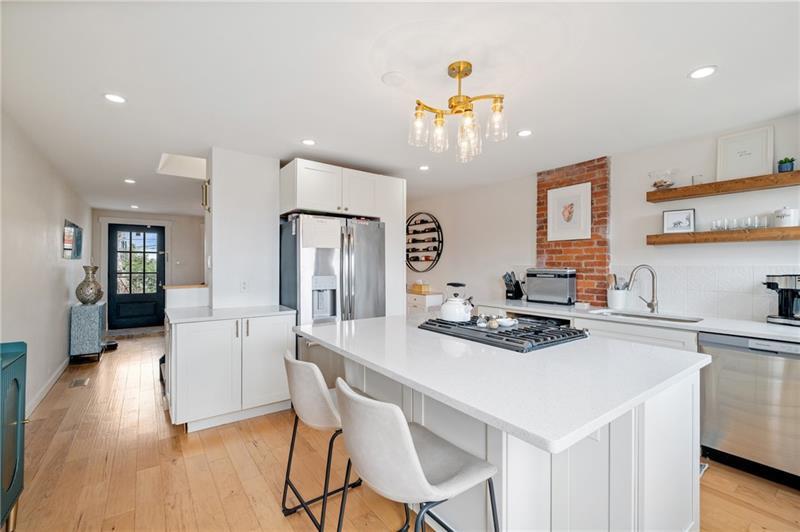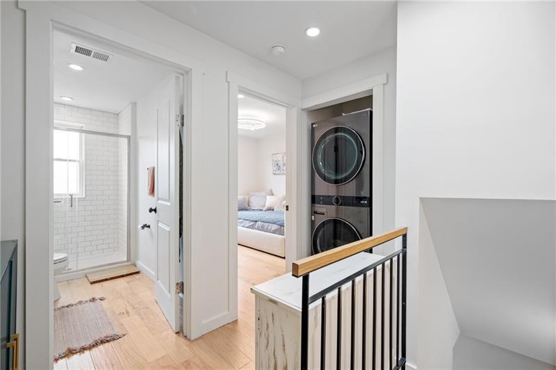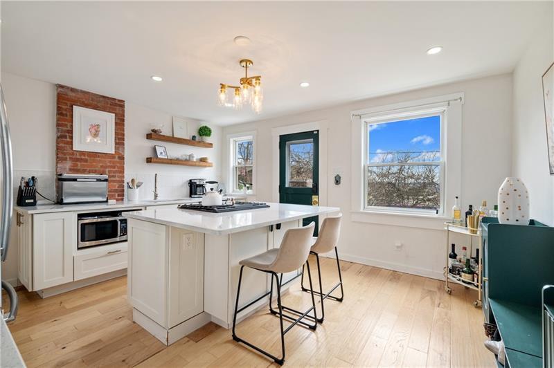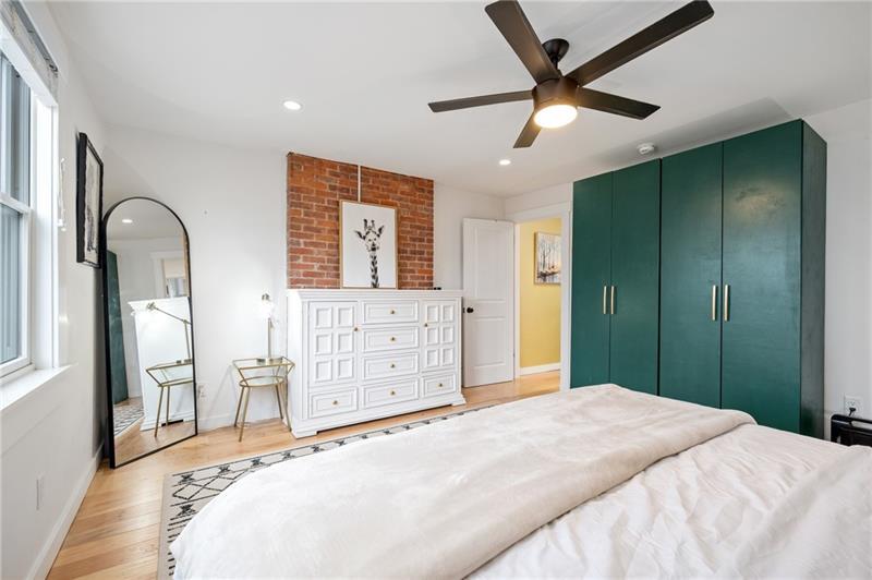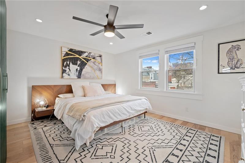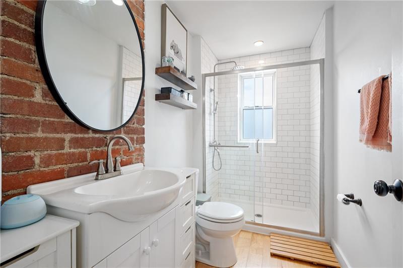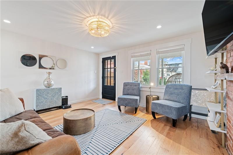 Fully updated Lawrenceville abode offers 2 bedrooms, 2 full baths, and a finished basement - uniquely positioned at the intersection of a dynamic neighborhood duo. Located just .03 miles from both Bloomfield's Liberty Avenue corridor and Lawrenceville's 20+ blocks along Butler Street, enjoy walkable access to Pittsburgh's best shopping and dining. Woolslayer Way introduces a secluded, village-style enclave, where a low-trafficked walkway meanders to the end-unit residence. A private porch leads to the open-concept main level, with double exposure from both sides of the home filling the space with natural light. The living room features hardwood floors and an original brick feature fireplace, while the eat-in kitchen impresses with a center island and direct access to the rear courtyard. Upstairs, the king-sized primary offers excellent storage with a spacious closet featuring built-in organization. A private second bedroom, a modernized full hall bath, and a convenient laundry closet complete the second floor. The finished basement adds valuable flexibility with a full bath, well suited for guest quarters or additional living space. Outside, a low-maintenance rear courtyard rounds out this polished offering. Conveniently located near Downtown Pittsburgh, the Strip District, UPMC Children's Hospital, and nearby universities including Pitt and CMU.