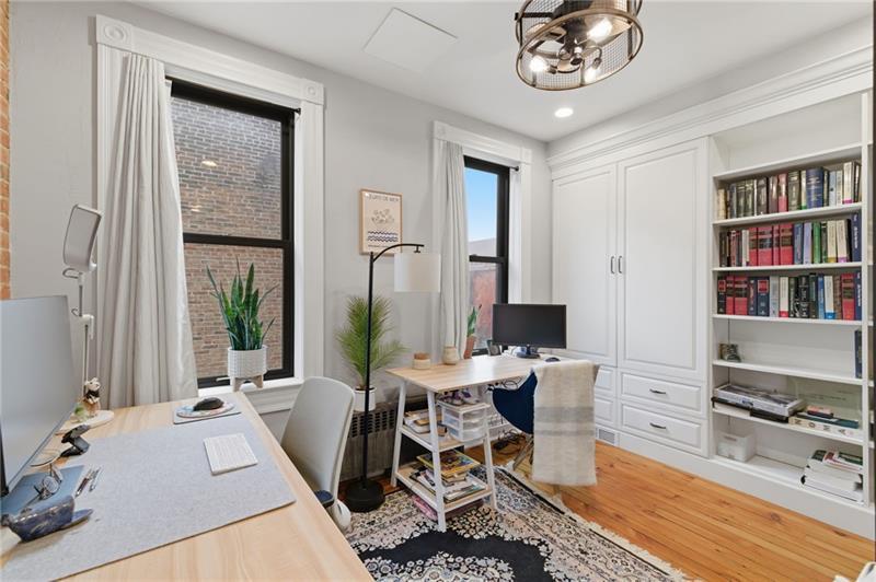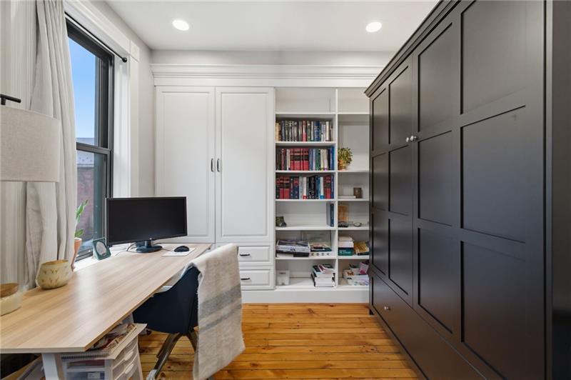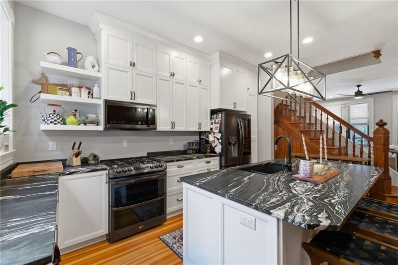 Located in the heart of Lawrenceville, this beautifully upgraded home offers the perfect blend of style, comfort, and convenience. Move-in ready with custom finishes throughout, this home truly stands out from top to bottom. The inviting living room features gorgeous built-in shelving and flows seamlessly into a high-end kitchen complete with leathered granite countertops, black stainless-steel appliances, and custom cabinetry. Step directly from the kitchen onto a private deck"”perfect for grilling and outdoor seating. Stunning hardwood floors. Upstairs, the spacious primary suite offers a spa-like retreat with a soaking tub, custom cabinetry, and a large walk-in shower with beautifully tiled finishes. A generously sized second bedroom and a versatile third bedroom"”currently used as an office with a Murphy bed"”provide flexible living options. The lower level includes an additional office area, laundry space, and a convenient enclosed half bath, along with ample storage. Enjoy an unbeatable location just steps from Butler Street's shops and restaurants, with easy access to major roadways. Street parking is readily available out front.