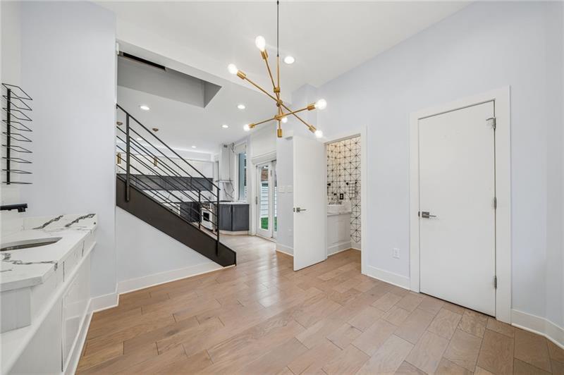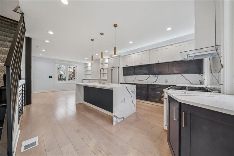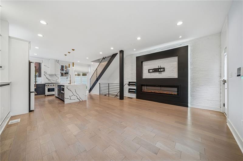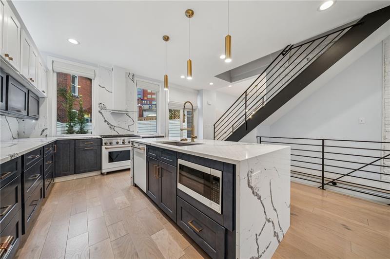 Located just steps from UPMC Children's Hospital, this exceptional home combines modern design with thoughtful functionality. The chef-inspired kitchen showcases flip-up maple cabinetry, premium Café appliances, and dramatic quartz surfaces. Oversized windows flood the interior with natural light, creating a bright and inviting atmosphere. The top-floor bedroom offers great flexibility, ideal as a home office, workout space, or guest suite, and includes a built-in Murphy bed for added convenience. Occupying the entire second floor, the primary suite spans nearly 700 square feet and features a custom walk-in closet with floor-to-ceiling built-ins and an impressive spa-like bath designed for relaxation. Additional highlights include a sleek lineal electric fireplace, wet bar with glass built-in shelving, convenient second-floor laundry room, great basement storage, turf area for outside relaxation and raised beds for your gardening.
