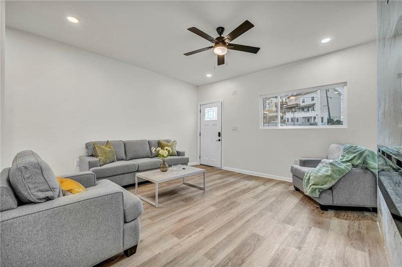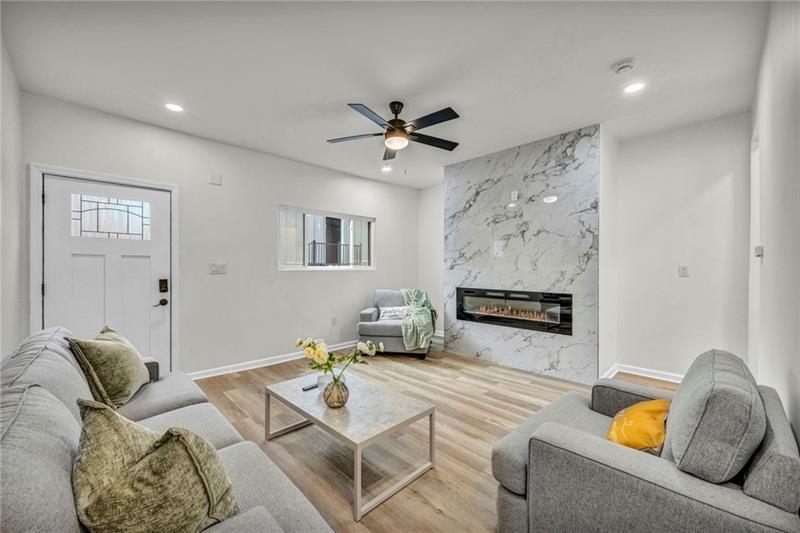 This Lawrenceville home offers the reliability of new construction within an extensively updated frame. Situated in a highly walkable location, the property provides convenient access to local dining and retail destinations. The main level includes a spacious living room centered on a built-in fireplace. The kitchen features white cabinetry, quartz countertops on a functional center island, and stainless-steel appliances. A powder room is also located on this level for convenience. On the second floor, there are two bedrooms and a full bathroom with a custom tile shower. The third floor serves as a private suite with its own full ensuite bathroom. The exterior provides a private yard enclosed by a six-foot privacy fence. Every system has been modernized to ensure a low-maintenance living experience in the heart of the city.