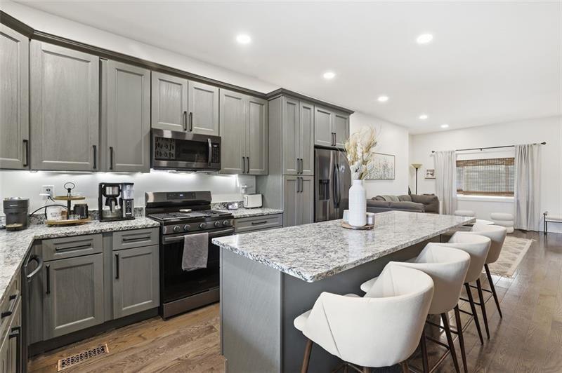 5239 Stanton Ave is a totally updated and impeccably maintained residence walking distance to all of Lawrenceville. The level is an open concept gourmet kitchen with eat-in large island and living room. Hardwoods throughout the first floor. Front porch for guests, and a back deck and fenced back yard for entertaining. Dog ready back yard! Main owner's suite takes most of the second floor with a massive en suite bathroom. Third floor has the second and third bedrooms. All bedrooms are large and have great closet storage. Second full bath is on the second floor at the top of the stairs. Lower level is walkout (mostly above grade) and finished"”usable as a gym, media room, office, or overflow living space. Two off-street parking spots round out the back yard! A great house in a great location!