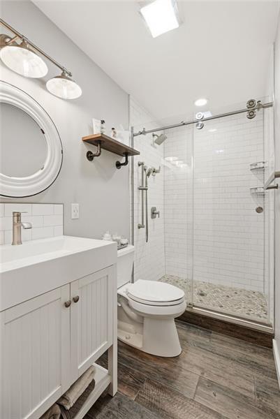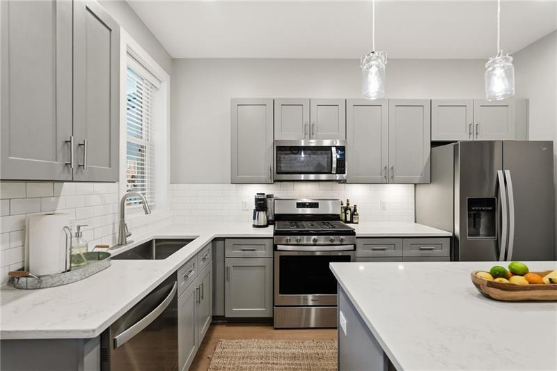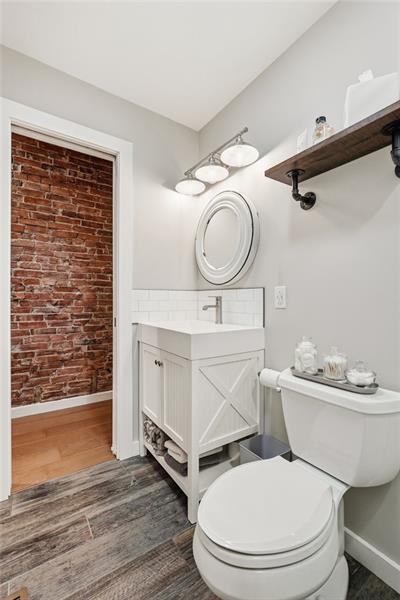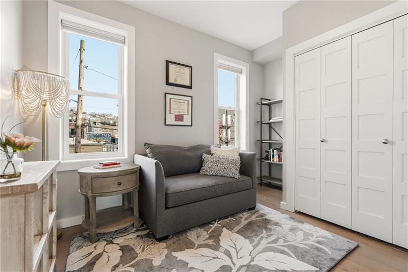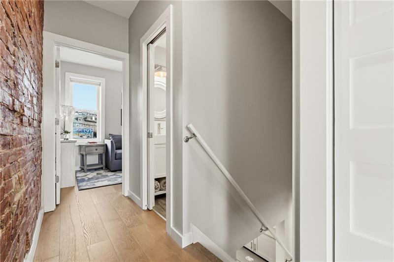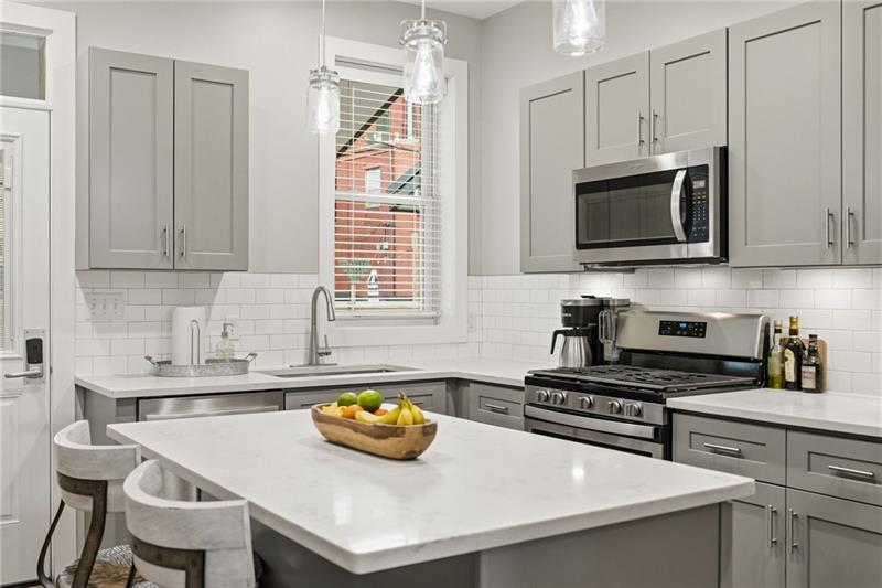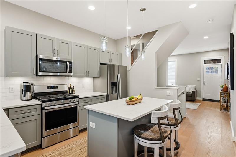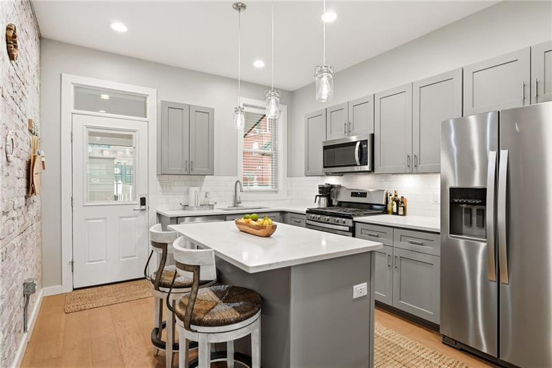 Urban chic at its best! This beautiful brick row house in Upper Lawrenceville was fully renovated from top to bottom, both cosmetically and mechanically, in 2019! Roof, windows, appliances, finishes, and ALL mechanicals are just 7 yrs. old! Featuring gorgeous hardwood flooring throughout, with clean contemporary finishes, exposed brick walls and a neutral color palette, this home is truly turn-key! The fully equipped gourmet kitchen boasts stainless steel appliances, elevated lighting, quartz countertops, custom cabinetry, and a huge quartz center island, perfect for dining and entertaining! The second floor offers two bedrooms, both with very generous closets, hardwood flooring and designer lighting. Both full bathrooms are fully renovated with oversized showers and gleaming white subway tile. The bright, dry and clean basement offers additional storage, the second full bathroom, and a fully equipped laundry area with washer and dryer. This home also features 1 off-street parking spot, a rare find in Lawrenceville! A covered rear porch offers the perfect spot for relaxation. Walking distance to the best dining, coffee shops, bakeries, boutiques, markets, galleries, brew pubs & shopping! Lawrenceville has been named one of the hippest cities in the USA! Just minutes from UPMC & Children's Hospital, Allegheny Health Network, Google, Uber, University of Pittsburgh, Carnegie Mellon University, the Strip District & Downtown***ADDED BONUS of 3 YEARS LEFT ON A CITY OF PGH ACT 42 ENHANCED LERTA PROPERTY TAX ABATEMENT***Showings begin on Friday, May 1, 2026***
