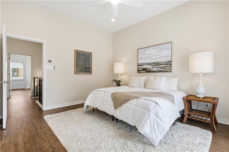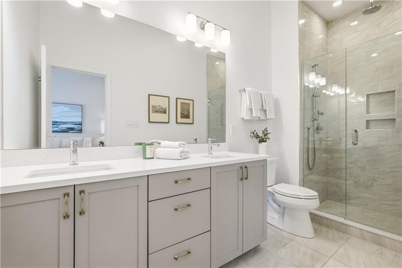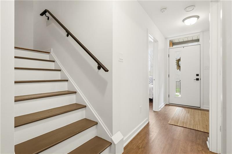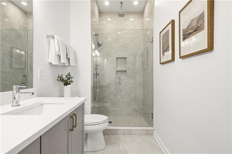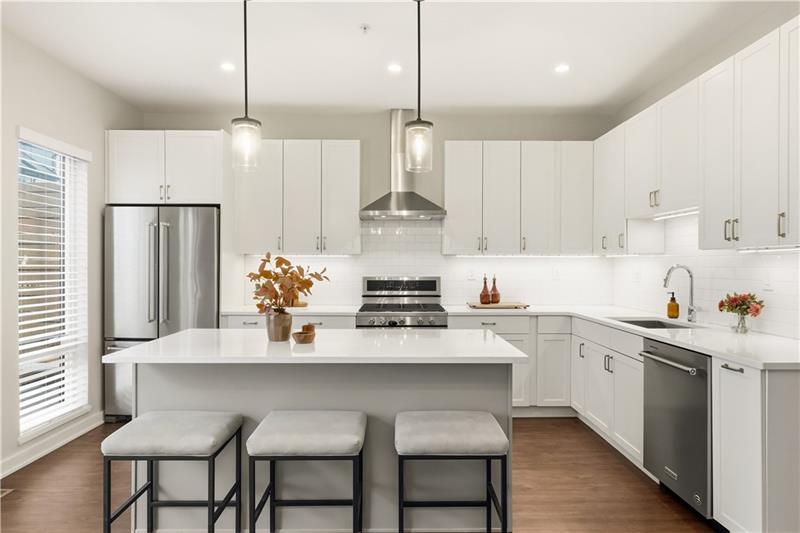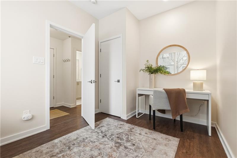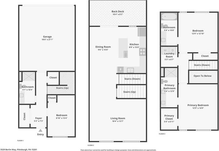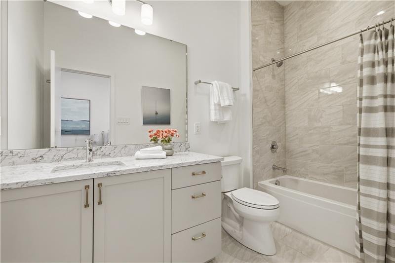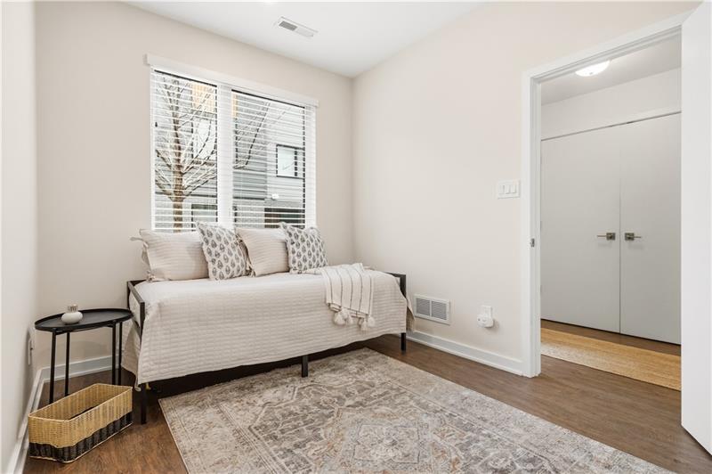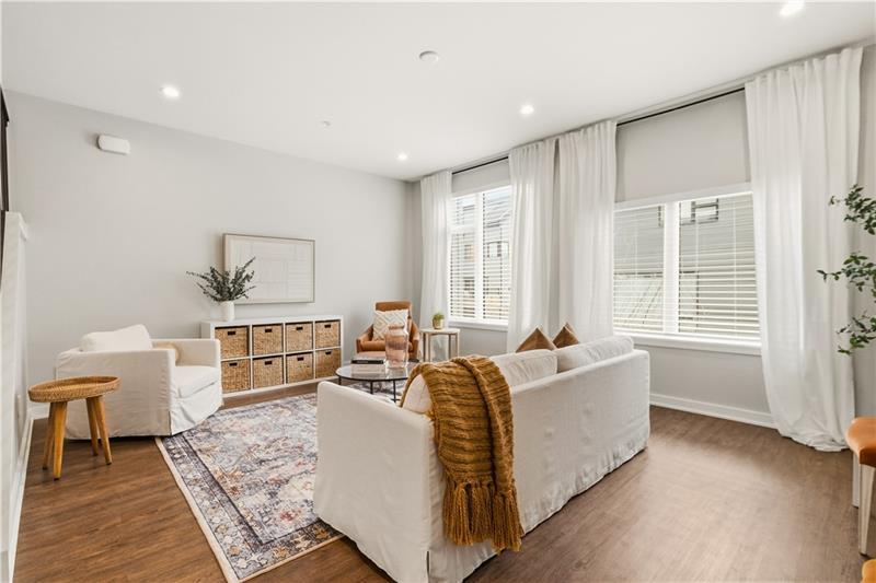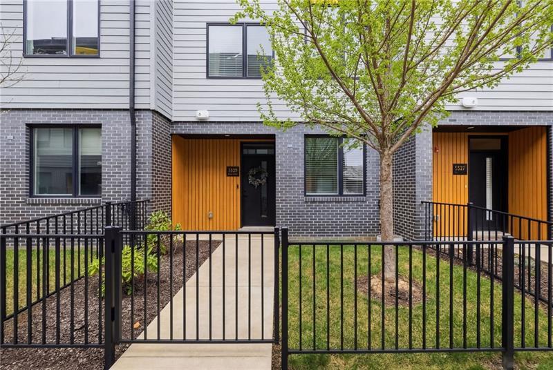 In Lawrenceville, finding a great home is doable. Finding one with a two-car garage is another story. Enter 5529 Berlin Way in The Mews on Butler. Built in 2021 as part of the Hanlon Collection, this 3-bedroom, 3-bathroom townhome combines the polish of new construction with the walkability Lawrenceville is known for, all within a community where parking is never a second thought. The Hanlon Collection layout spans three levels. The entry floor features large closets and a versatile bedroom or home office with a full bath. Custom iron railings lead to the heart of the home: an open-concept second floor showcasing an 18×14 family room, oversized windows, quartz countertops, a 6-foot kitchen island, and stainless-steel appliances. Off the kitchen, a generously sized back deck is ready for grilling season. The upper level hosts a spacious primary suite with dual vanities and a walk-in closet, a second bedroom suite with full bath, and a dedicated laundry room. The original owners added custom closet systems, shelving throughout, ceiling fans in both upper bedrooms, and front yard landscaping. The property still looks and feels brand new, offering the chance to inherit all the advantages of new construction without the wait, and with an established community already in place. The HOA covers all exterior landscaping, snow removal to your front door, and trash collection. Walk to Pusadee's Garden, Spirit PGH, The Abbey on Butler, and Lolev Brewery. Ten minutes to Downtown, Oakland, the Strip District, and UPMC Children's Hospital of Pittsburgh.