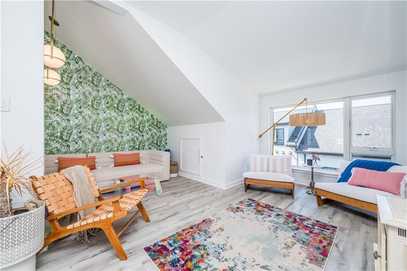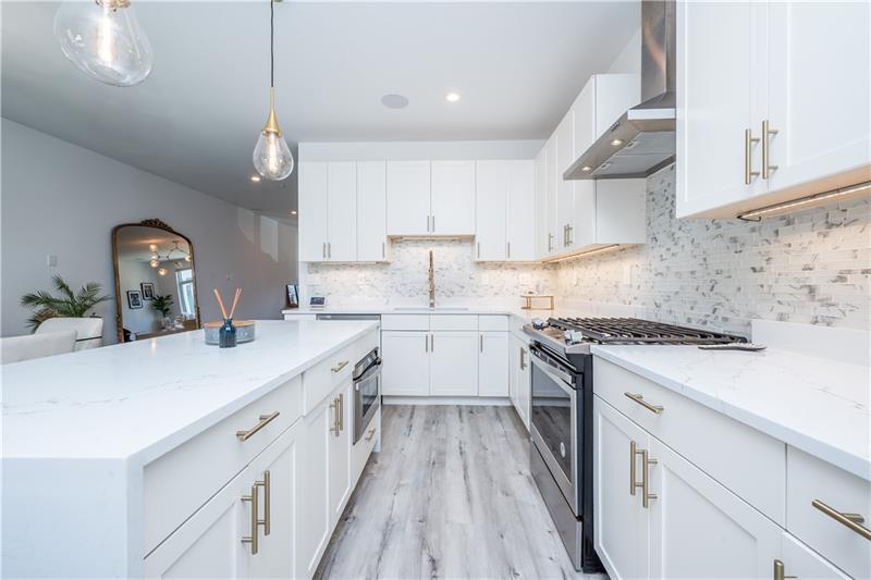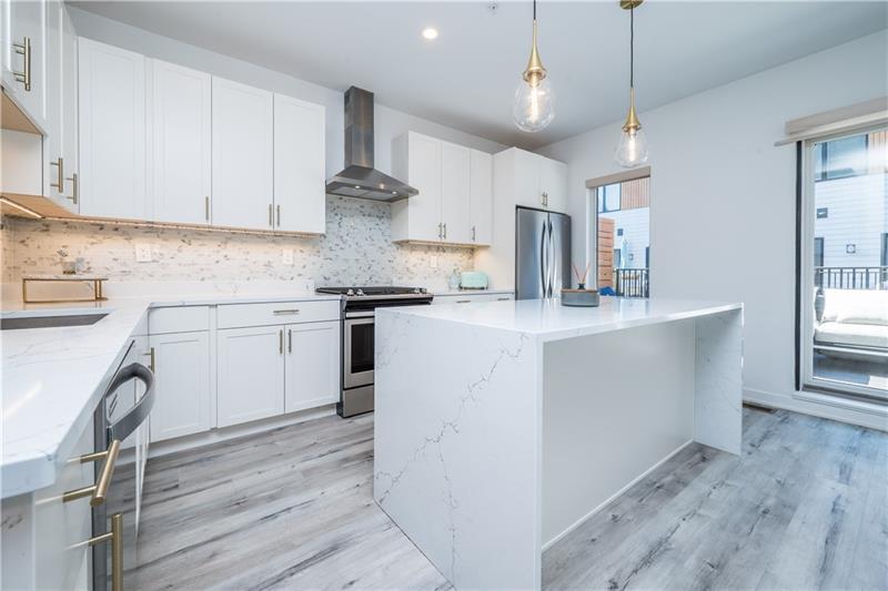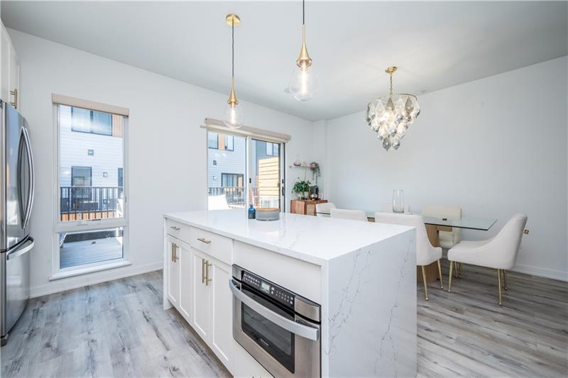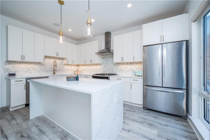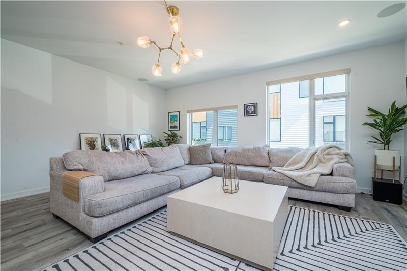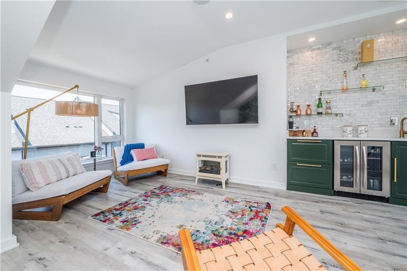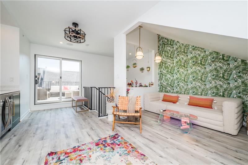 Discover a rare townhome in The Mews on Butler, offering more space & upgrades than most. This expanded floorplan with extra square footage, includes updated lighting, smart lights, a multi-zone audio system, stylish kitchen backsplash, & tasteful accent wallpaper. The entry floor provides a private bedroom with full bath & access to the 2-car garage. The main floor shines with open living & dining. The chef's kitchen features a large island, under-counter microwave, & sliding doors to a walk-out deck. Upstairs, the owner's suite boasts natural light, walk-in closet, & full bath with double vanity, while a second ensuite bedroom & hall laundry complete this level. The top floor is the showstopper"”an expanded mezzanine with wet bar opening to a private rooftop deck, perfect for entertaining or relaxing. Steps from Lawrenceville's dining, shopping, breweries, & galleries, with quick access to downtown Pittsburgh & major hospitals. Style, space, & upgrades unite for unmatched city living!