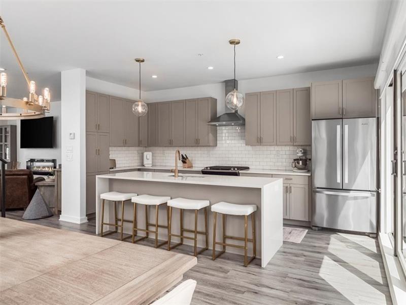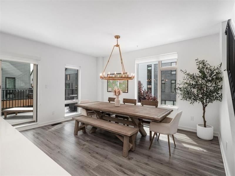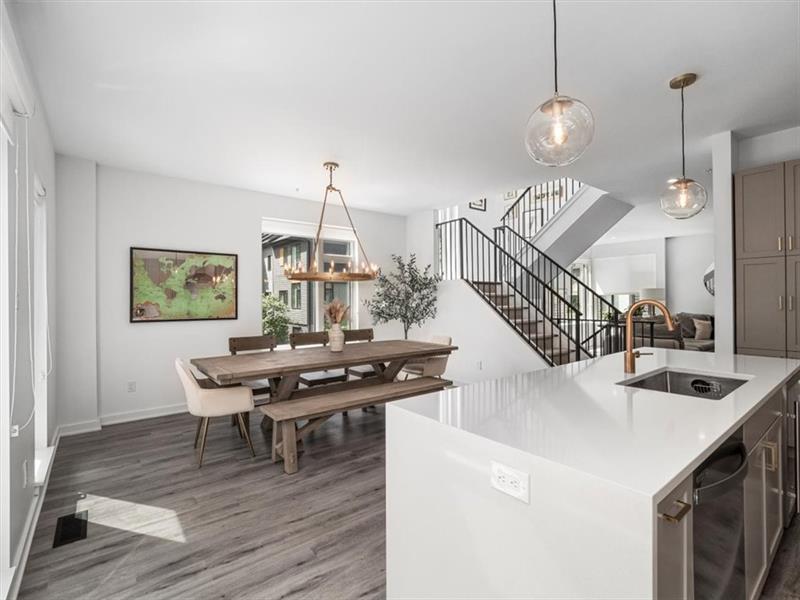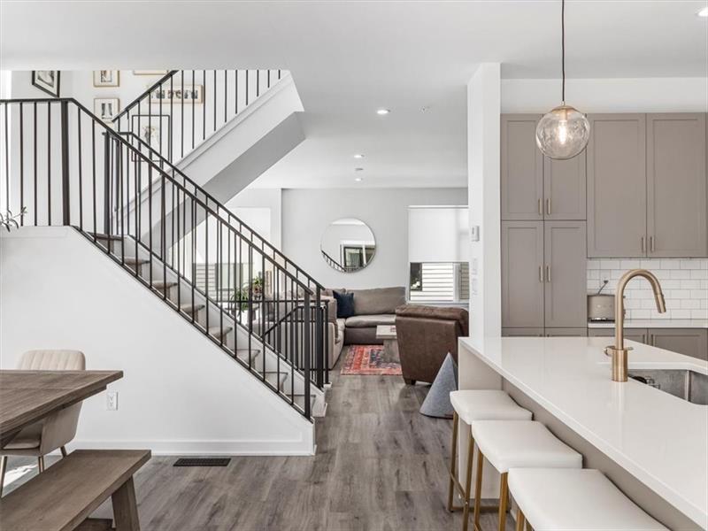 Perfectly situated in the heart of Lawrenceville, this stunning end-unit townhome combines modern luxury with an unbeatable location. Featuring 4 spacious bedrooms, 3 full baths, and a 2-car garage, it's designed for both refined living and effortless entertaining. The entry level includes a private guest suite with full bath, while the main floor showcases an open layout with a sun-filled family room, elegant dining area, and a chef-inspired kitchen with granite countertops, a large waterfall counter island, soft-close cabinetry, and premium stainless steel appliances. Upstairs, the primary suite offers a generous walk-in closet and spa-like bath with dual vanities. Additional highlights include custom iron railings, dual-zone HVAC, recessed lighting, and Hardie siding. Enjoy walkable access to Butler Street's boutiques, award-winning restaurants, and vibrant nightlife. Includes 5-year tax abatement.