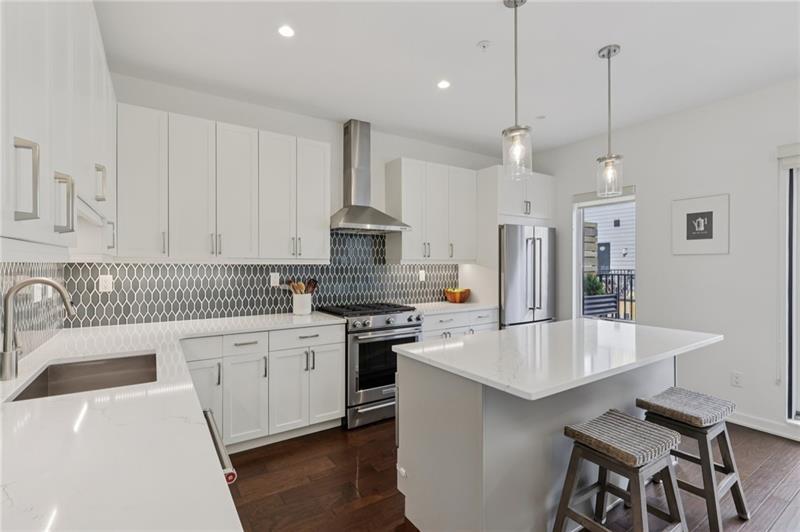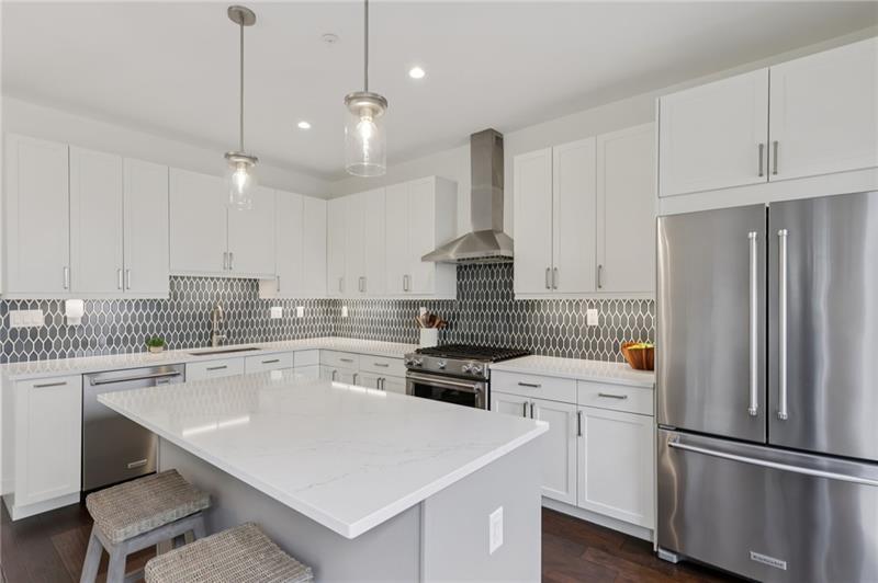 Welcome to The Mews on Butler in Upper Lawrenceville. This stunning four-story luxury townhouse redefines modern urban living with an exceptional blend of sophistication, comfort, and high-end design. Thoughtfully crafted with premium finishes throughout, the home offers an open-concept vibe that enhances natural light, flow, and functionality while creating an ideal space for both everyday living and entertaining. Open the door to a welcoming entryway. This level boasts a spacious bedroom, full bath, and garage access. Ascend to the main living area that features a designer kitchen equipped with KitchenAid appliances, quartz countertops, custom backsplash, a mini dry bar/beverage cooler, and an oversized island perfect for entertaining. Seamlessly flowing into the dining and living areas, this space is ideal for both everyday living and hosting guests in style. Enjoy relaxing or soaking up the sun on the deck off the kitchen, equipped with gas connectivity. The custom laundry room is conveniently located upstairs along with two generously sized bedrooms, two full baths, and a walk-in closet with custom built-ins in the primary bedroom. The fourth floor can be whatever you want it to be - a bedroom, nursery, office, entertainment area, fitness area. You decide! A custom expansion and built-in book case enhance the functionality of this space. Step out onto the rooftop deck , equipped with gas and water connections, to enjoy an evening under the stars. A secure, integral, two-car garage features epoxy flooring and custom shelving for extra storage. Easy access and minutes away from downtown Pittsburgh, The Strip, Bakery Square, Sports Venues, major hospitals and universities, walking/biking trails, and more. Perfectly situated in a dynamic urban setting, this extraordinary home combines contemporary design with convenience, offering unparalleled access to dining, shopping, and entertainment.