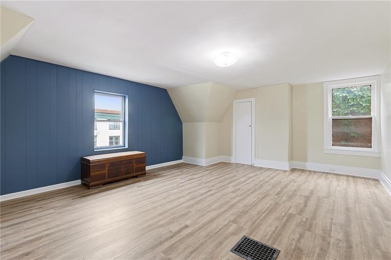 This is a spacious home has a unique layout designed for multi-generational living or flexible use. A large rear addition expanded the home to allow for more living area per level. The main floor offers a kosher kitchen, 2 bedrooms, full bath, living & dining area. The upper unit spans the 2nd & 3rd floors with a 2nd kosher kitchen, 4+ bedrooms, full bath, and large open living & dining area with additional bonus rooms. The walkout basement provides a bedroom, living area, full bath, laundry, & potential to finish off additional spaces used for storage currently. Large windows bring in abundant light & new LVP flooring runs throughout most of the home. Outdoor amenities include a front covered porch, tiered backyard with patio, & corner-lot privacy. Practical features include 2 off-street parking spaces, a garage currently used for storage, and alley access to the rear yard. This home is centrally located, convenient to the waterfront and public transportation. Zoned for Single Family.